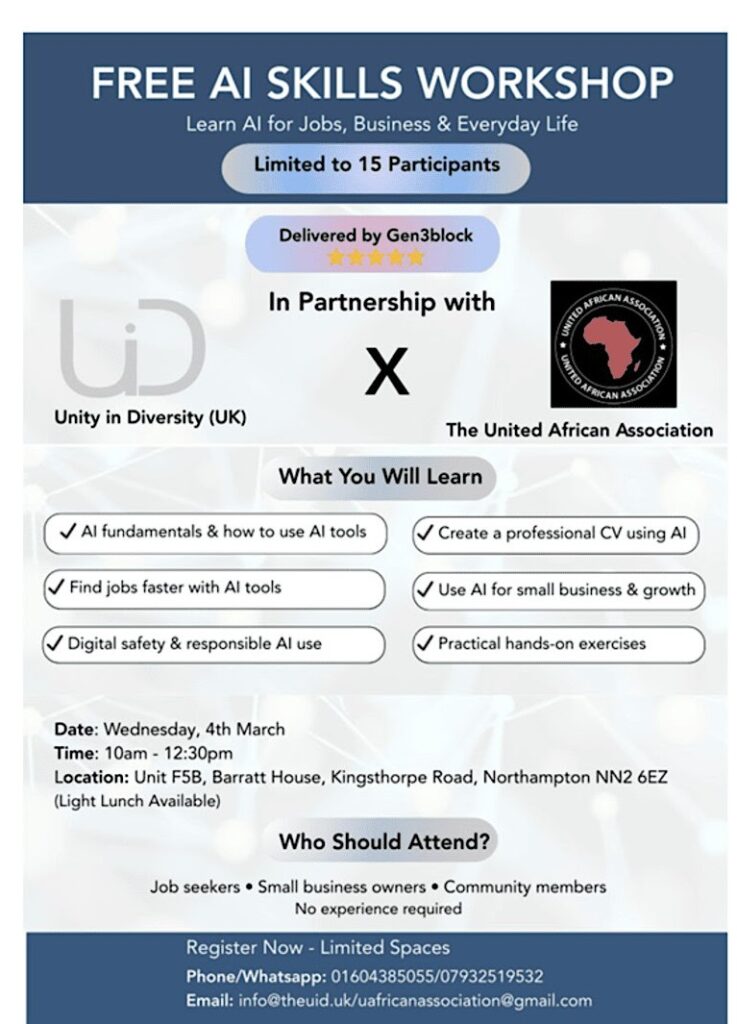 United African Association’s project – Black History Month Event – has been shortlisted for an award at our 2025 Northamptonshire Community Foundation Annual Awards.
