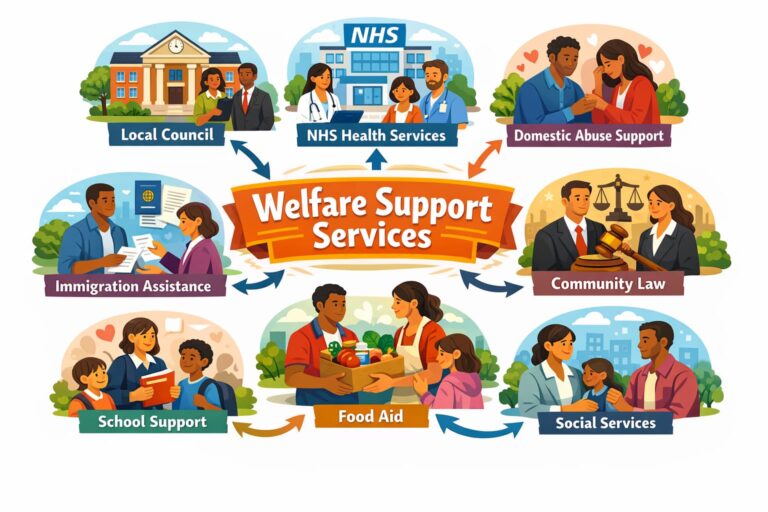 UAA works with a range of welfare support partners to help people facing homelessness, domestic abuse, immigration difficulties, poverty, and other urgent challenges. These partners may include local authorities, social services, NHS services, schools, domestic abuse organisations, immigration support services, community law services, and other voluntary and community organisations.